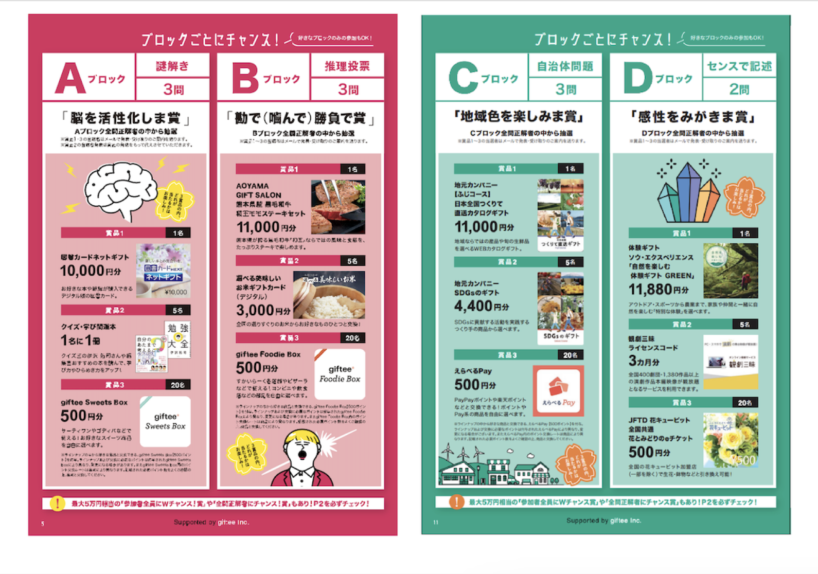 クイズのテーマにあったギフトをギフティで13種類用意
